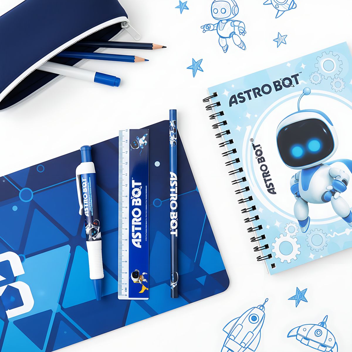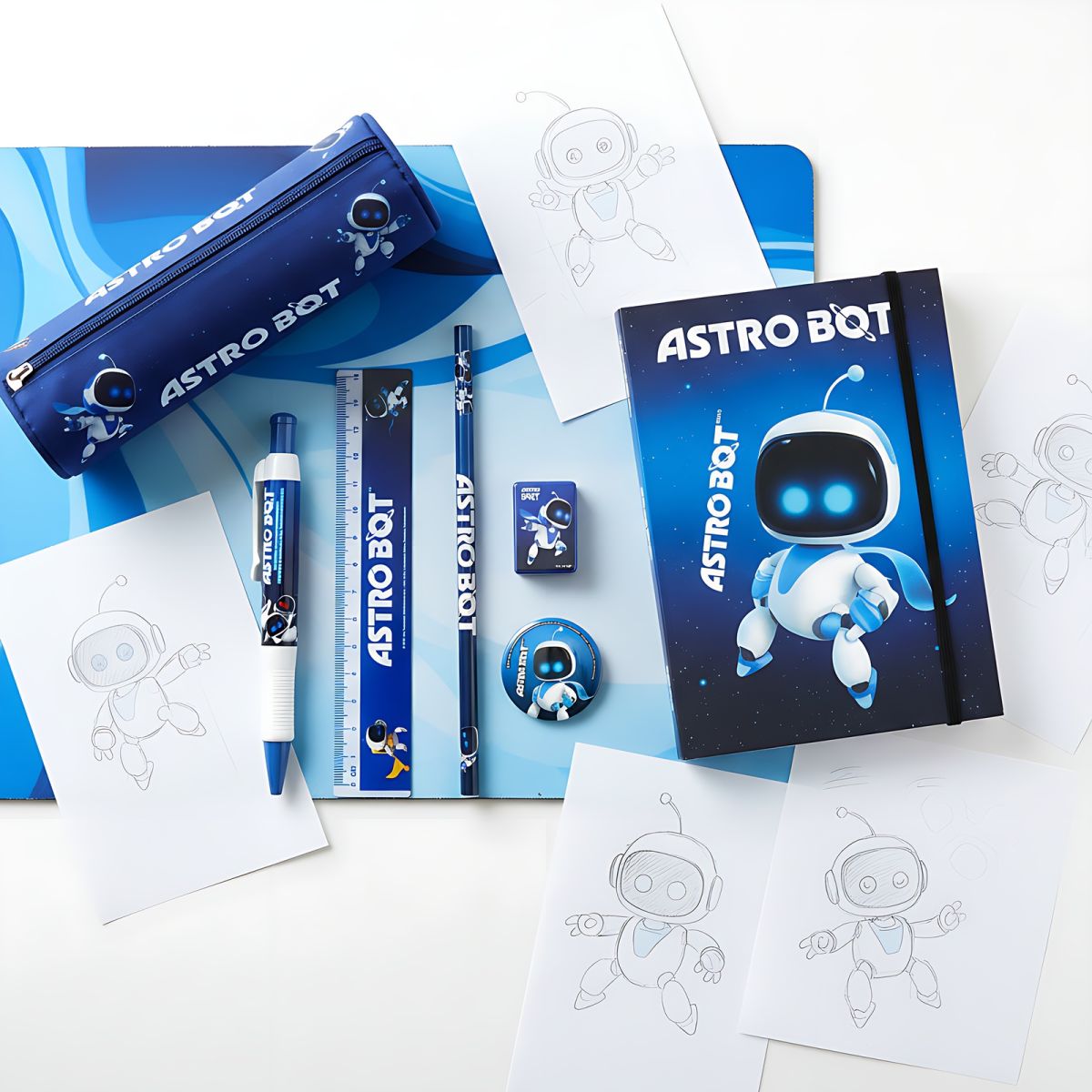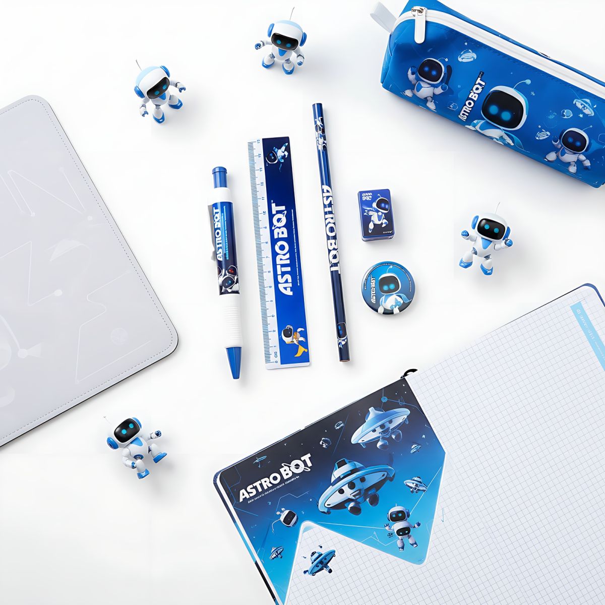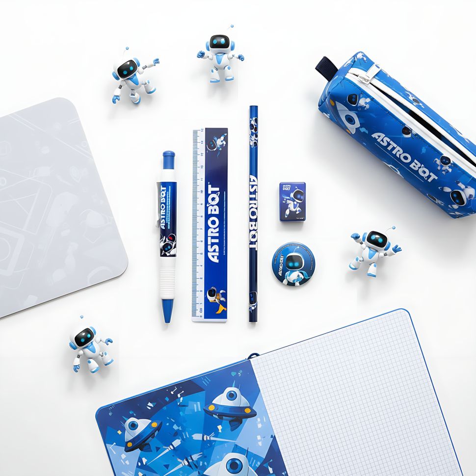 Oryginalny zestaw szkolny na oficjalnej licencji Astro Bot, zaprojektowany z dbałością o szczegóły i zgodny z oficjalną identyfikacją wizualną marki.