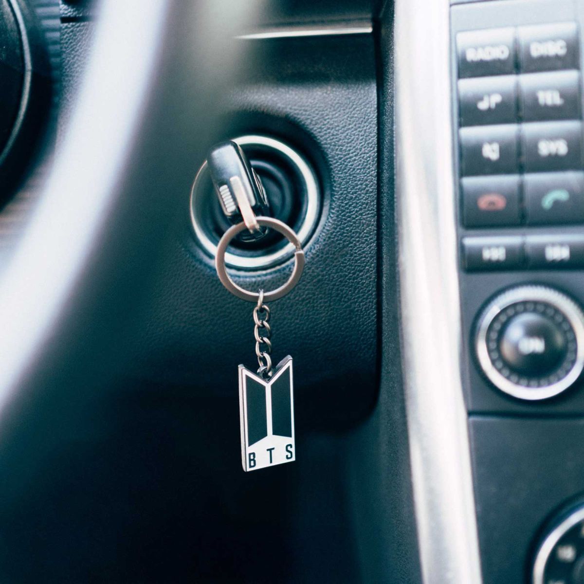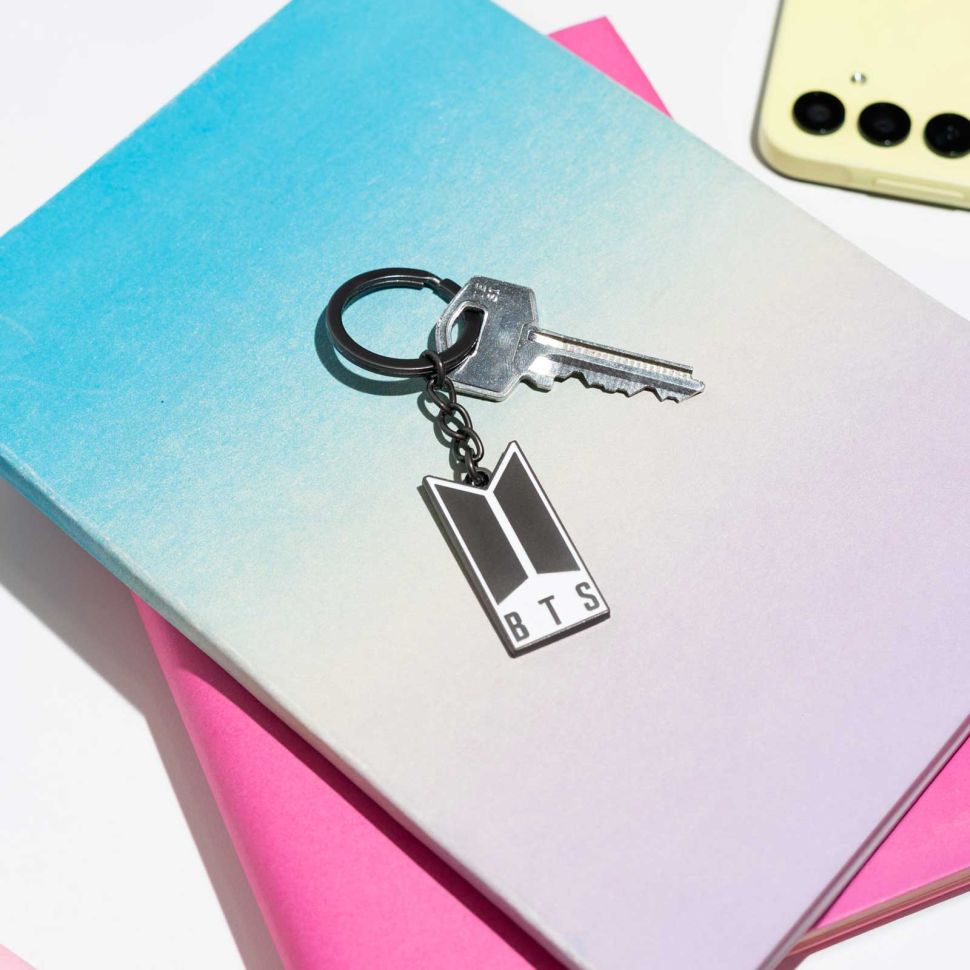 Prosty projekt z logo BTS sprawia, że akcesorium dobrze prezentuje się przy kluczach, plecaku, torbie lub saszetce i łatwo dopasowuje się do codziennych rzeczy.