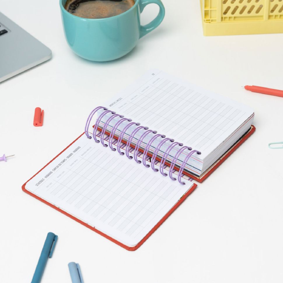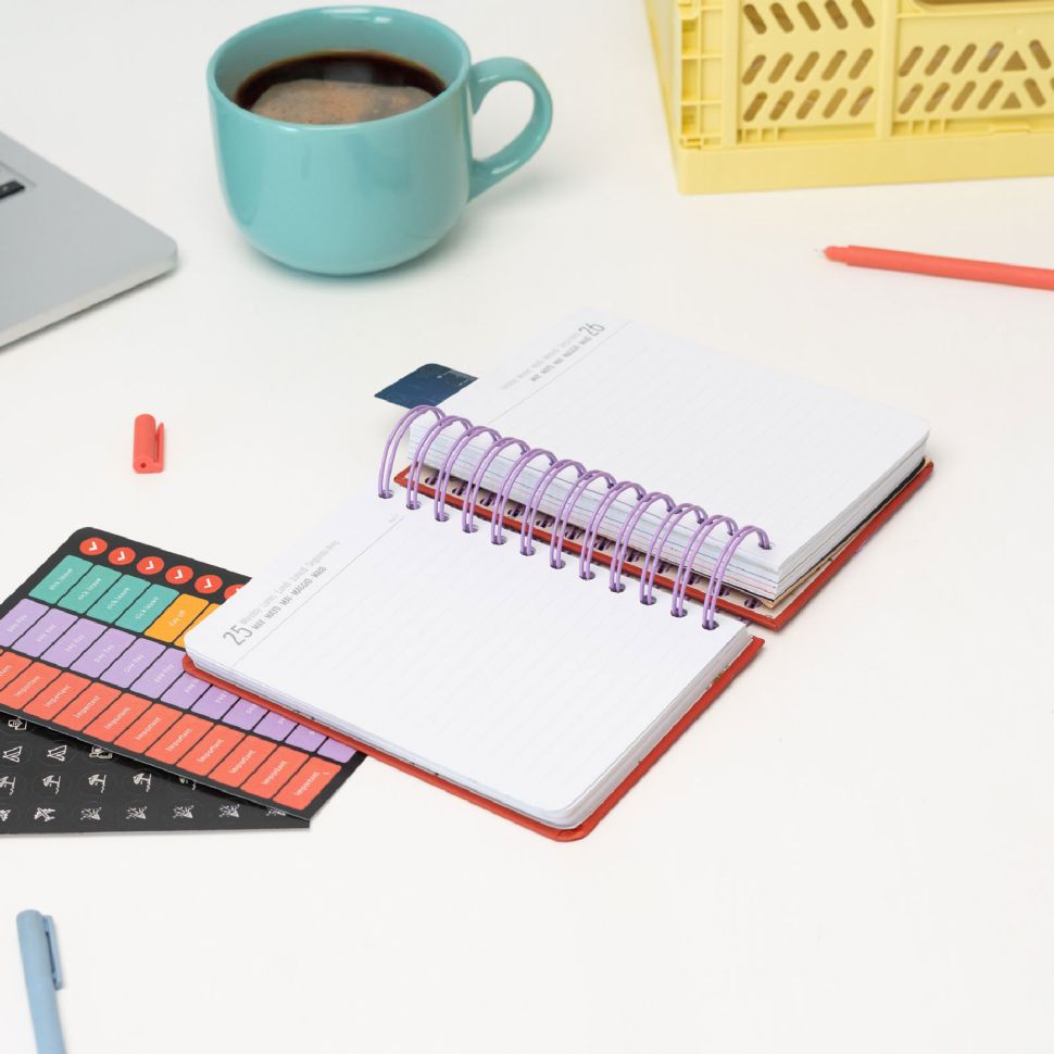 Planer w kompaktowym formacie 13,5×19 cm posiada elastyczną gumkę, tasiemkę zakładkę i wysokiej jakości papier, idealny do pióra i długopisu.