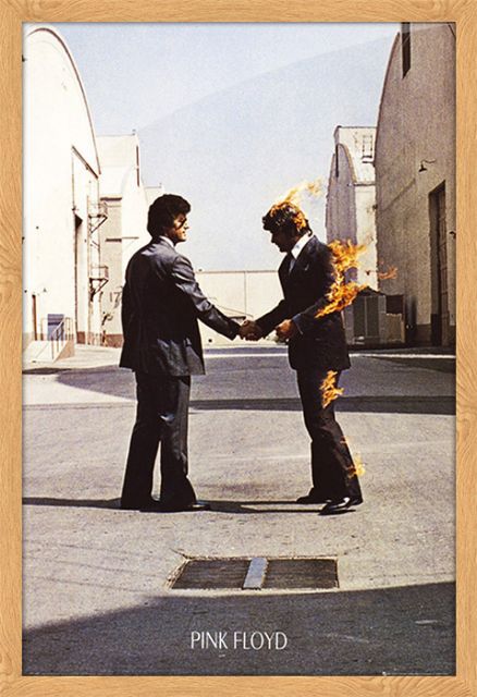 Obraz oprawiony w ramę drewnopodobną pod tytułem Pink Floyd Wish You Was Here - obraz.