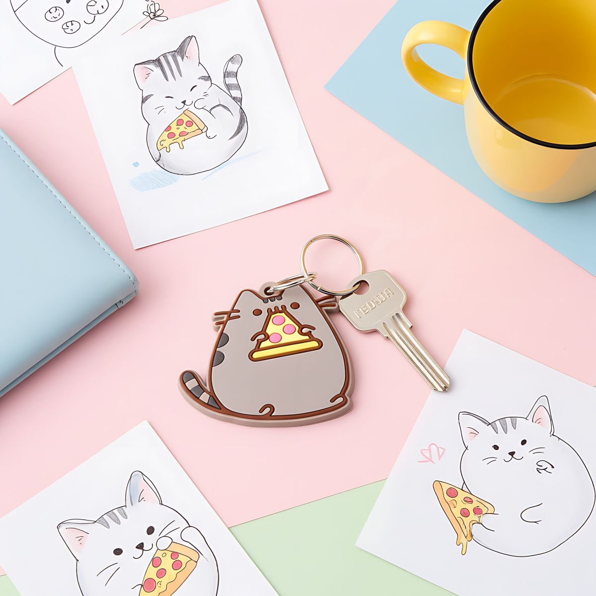 Idealny dla każdego, kto kocha Pusheen i jej miłość do jedzenia - ten brelok jest nie tylko praktycznym dodatkiem do kluczy czy torby, ale także świetnym sposobem na wyrażenie swojej pasji do tego uroczego kotka. Każdy detal, od kawałka pizzy w łapce Pusheen po jej zadowoloną minę, został starannie odwzorowany, aby przynieść uśmiech na Twoją twarz za każdym razem, gdy spojrzysz na niego.