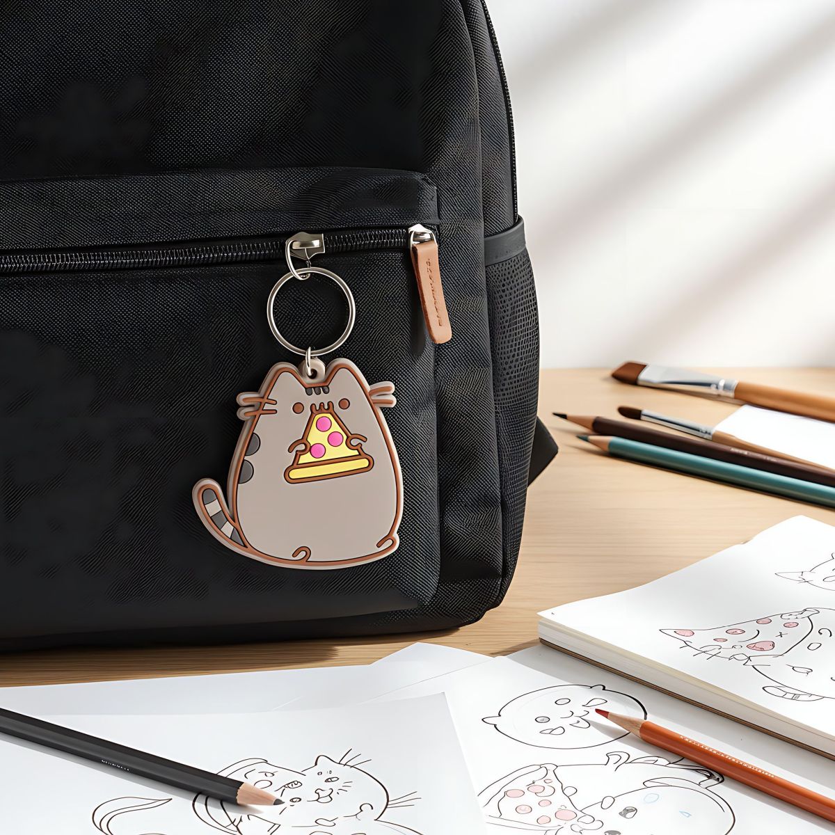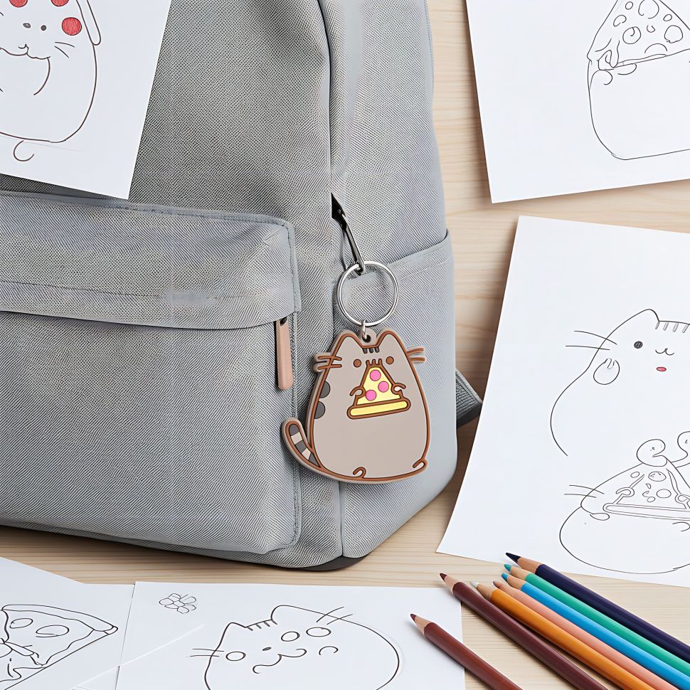 Pusheen, ten sympatyczny, pulchny kotek, stał się ulubieńcem wielu z nas dzięki swoim uroczym przygodom i zamiłowaniu do jedzenia. Teraz, dzięki temu brelokowi, możesz nosić ze sobą chwilę, w której Pusheen delektuje się swoim ulubionym kawałkiem pizzy!