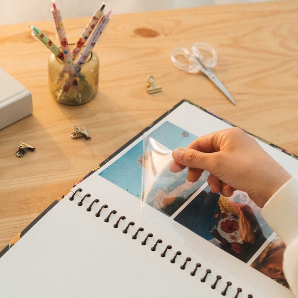 Wewnątrz znajduje się 30 stron samoprzylepnych, które pozwalają wygodnie ułożyć fotografie i stworzyć własną kompozycję bez potrzeby stosowania dodatkowych narożników czy kleju.