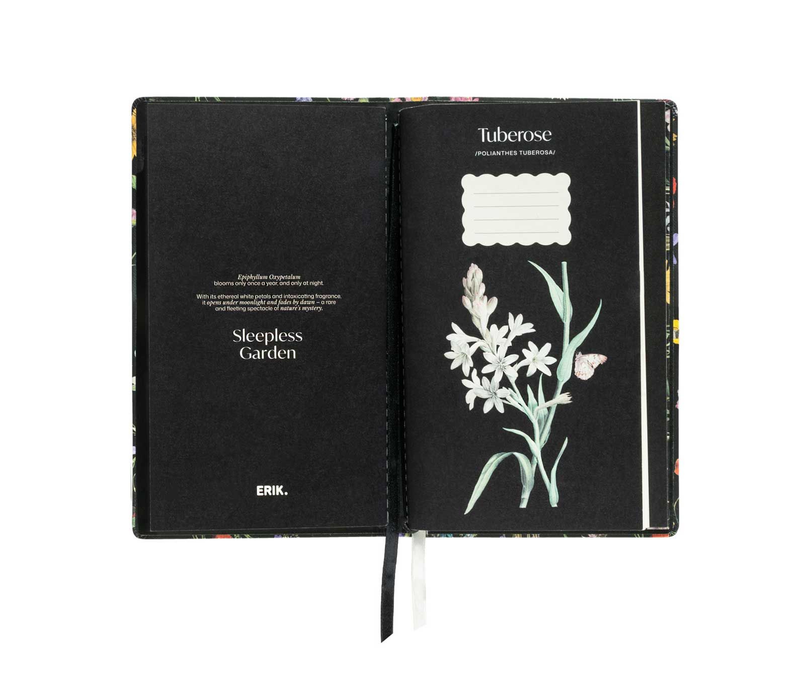 Dekoracyjna okładka inspirowana motywem Sleepless Garden łączy estetykę z praktycznym zastosowaniem, dzięki czemu notes może być także ciekawym pomysłem na prezent.