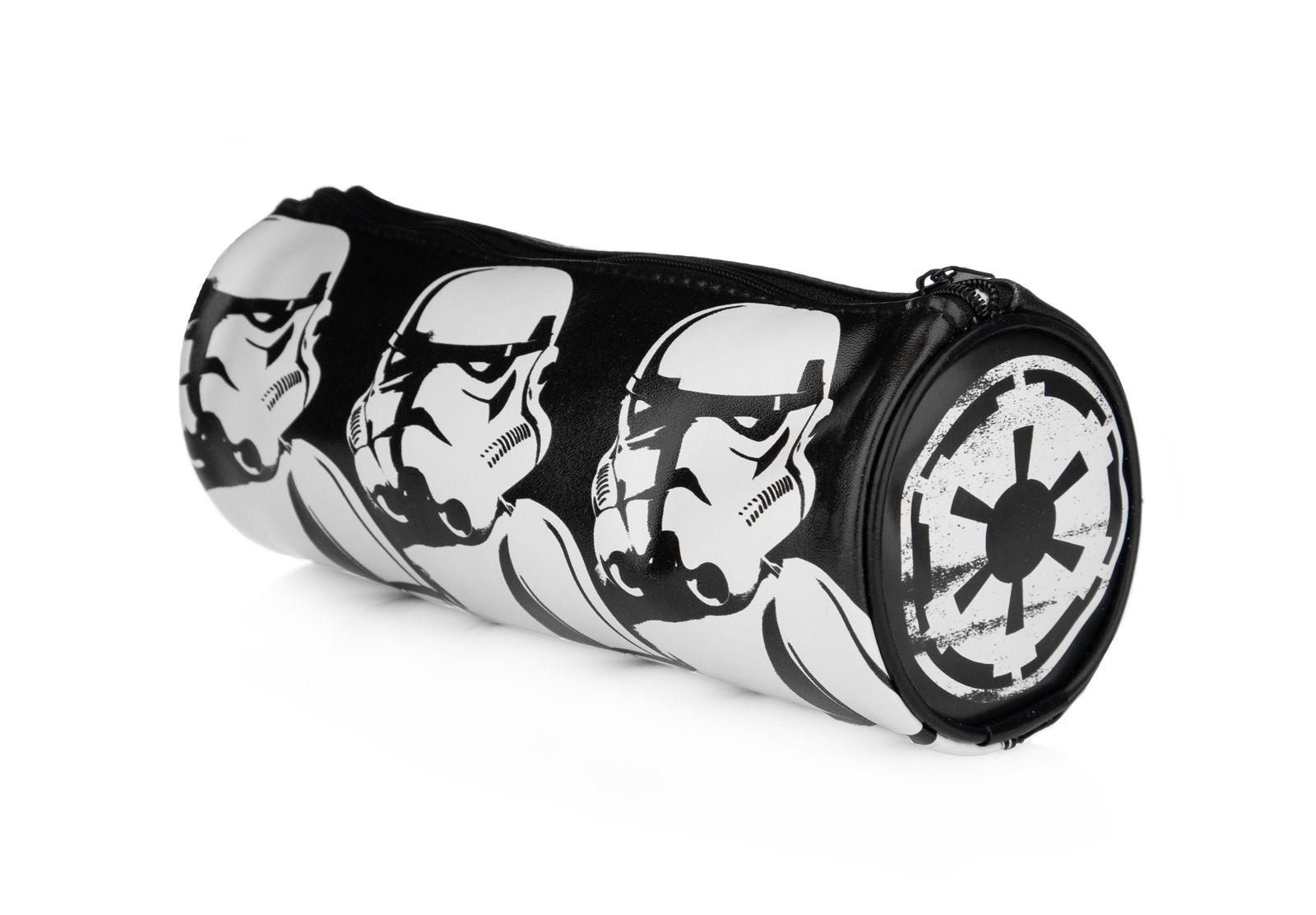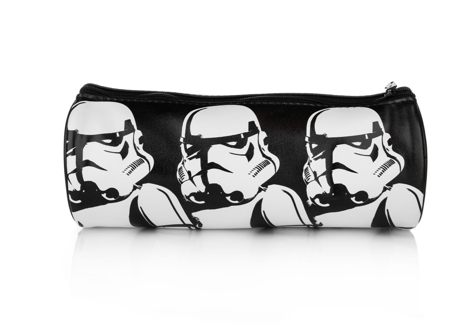Futurystyczny piórnik Star Wars Stormtrooper w cylindrycznej formie to obowiązkowy gadżet dla każdego fana Gwiezdnych Wojen, Utrzymany w czarno-białej stylistyce z wyrazistym motywem hełmów szturmowców i symbolem Imperium, idealnie pasuje do szkolnej wyprawki lub codziennego użytkowania, Zamek błyskawiczny pozwala na wygodne otwieranie i zamykanie, a kompaktowy rozmiar zapewnia porządek w plecaku,