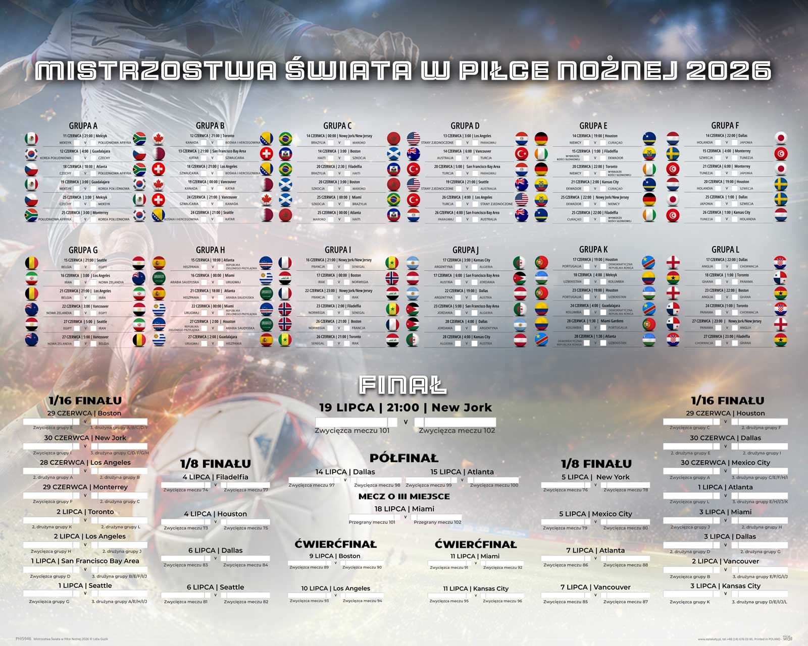 Jeśli zamierzasz śledzić wszystkie rozgrywki, nasz plakat terminarz Mundial 2026 będzie dla Ciebie idealny!