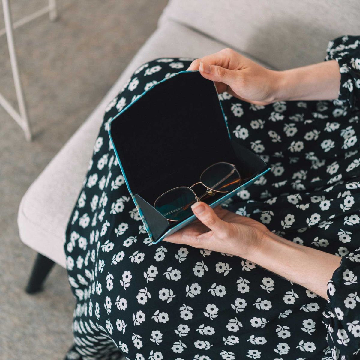 Trójkątna konstrukcja dobrze chroni okulary podczas codziennego przechowywania, a po złożeniu etui zajmuje niewiele miejsca i wygodnie mieści się w torbie lub plecaku.