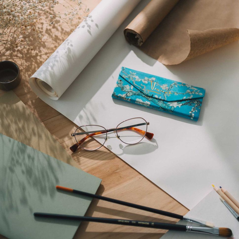Etui na okulary Triangle Van Gogh Museum to praktyczny dodatek o ciekawym, składanym kształcie, który łączy funkcjonalność z artystycznym charakterem kolekcji inspirowanej twórczością Van Gogha.